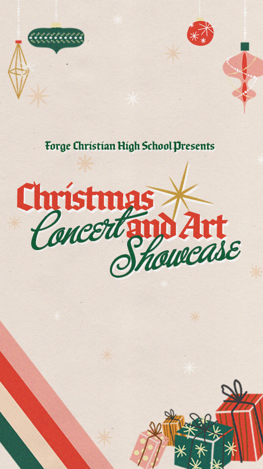 Celebrate the wonder of the season at the Forge Christmas Concert and Art Showcase! Join us at Grace Church and experience heartfelt music and inspiring artwork from our talented students as we welcome Christmas with creativity and cheer.