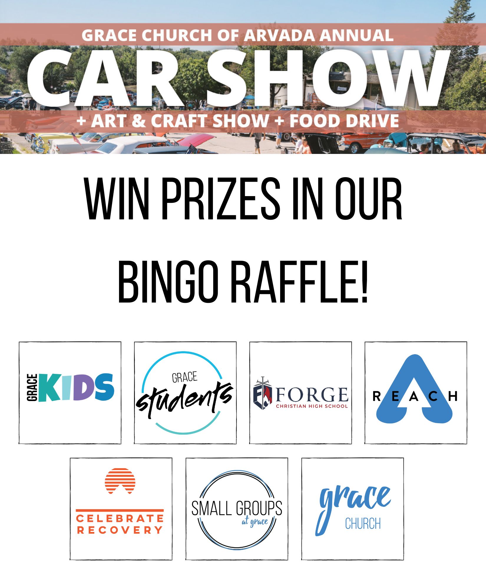 Pick up a bingo card from the Grace table in the parking lot by the food truck area.